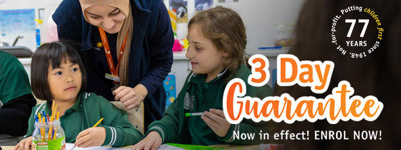 We’re open from 7am – 9am for Before School Care with breakfast provided, 3pm – 6:30pm for After School Care with afternoon tea provided and 7am – 6:30pm during Vacation Care.